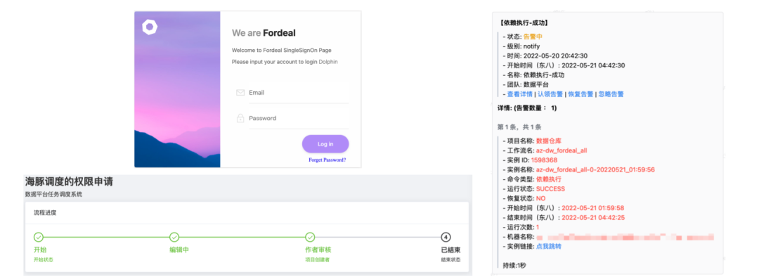 下方三张图就是对应分别是登录系统、工单权限和企业微信的告警。