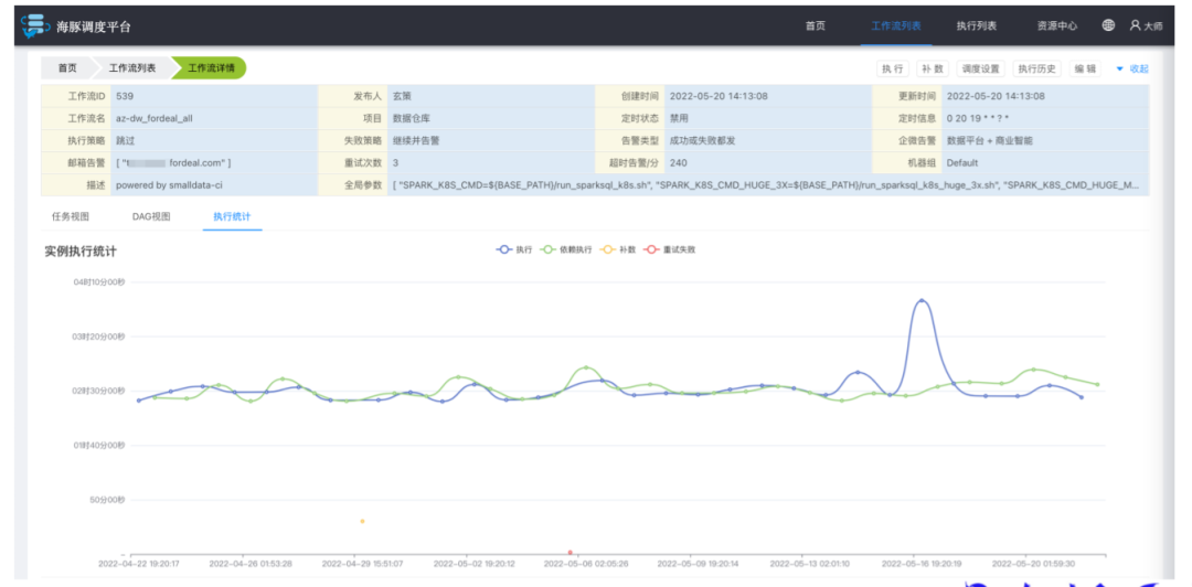 DS 支持运行中失败任务手动重试。通常一次跑数仓需要数个小时,其中有几个task可能因为代码问题报错,我们希望可以在不中断任务流的情况下,手动重试,把错误的节点逐一修改完后重试。这样最终的状态是成功的。