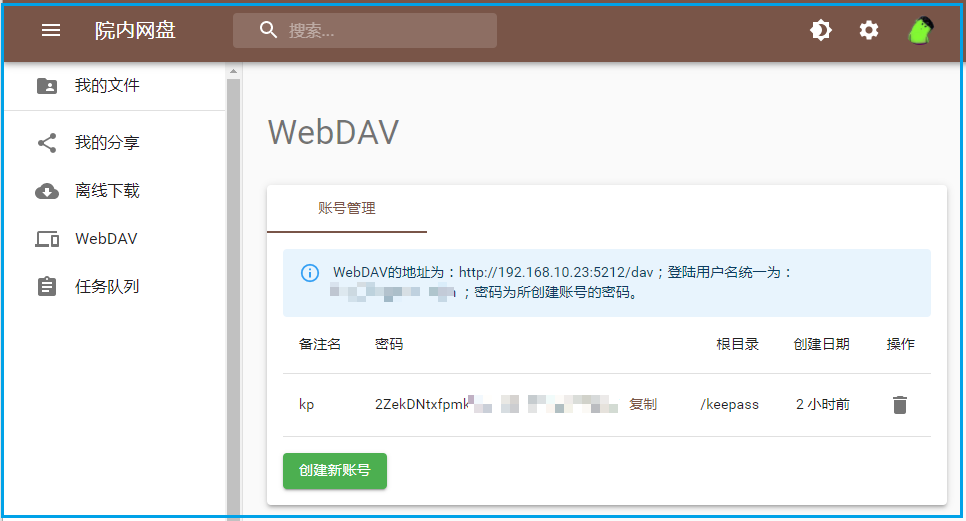 WebDAV是基于HTTP的共享协议,用户可以使用用户名和密码来访问存储资源,可供多个用户共享文件。