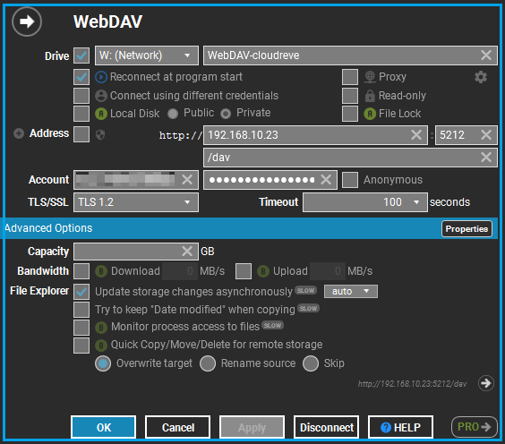 cloudreve 支持 WebDAV 方式对文件进行读取,在软件配置界面可以指定写入目录: