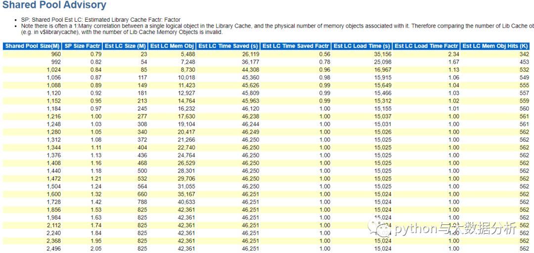 Shared Pool Advisory,则一直比较均衡,基本上维持在现有的水平,1G左右已经足够了。