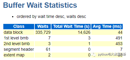 关于等待统计,主要包括缓冲等待统计和排队活动统计