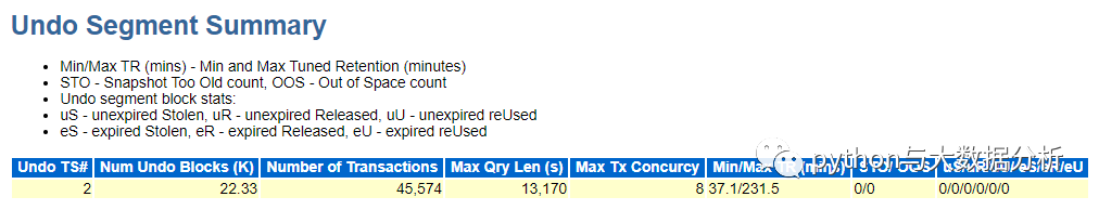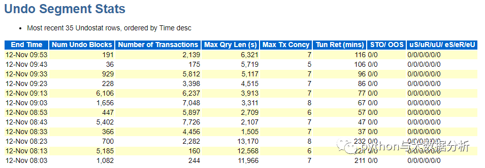 Undo Segment Stats统计的是回滚段各种指标情况,是按时间排序,刚好和数据抽取的时间周期对应的上。