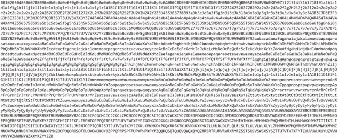 在具有相同字体设置(包括文本大小、字体、颜色、hsl)的编辑器中,粘贴待处理字符的德布鲁因(De Bruijn sequence)。