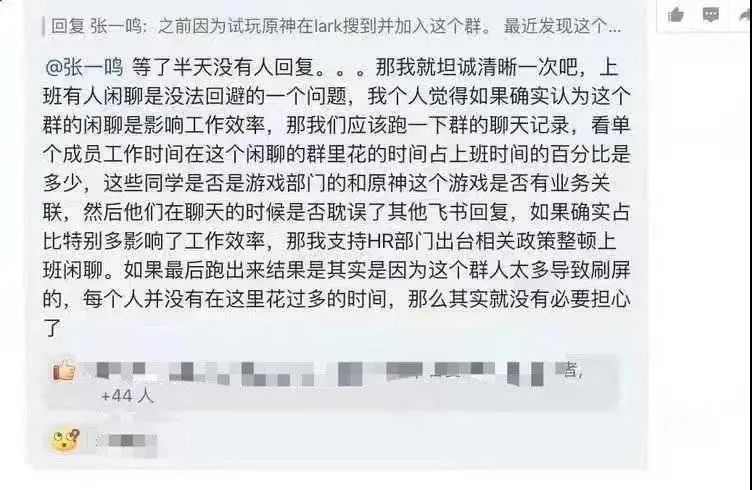 该员工表示,上班闲聊是没法回避的问题,关键是否影响工作效率,群里的同学是否与这个游戏有业务关联。