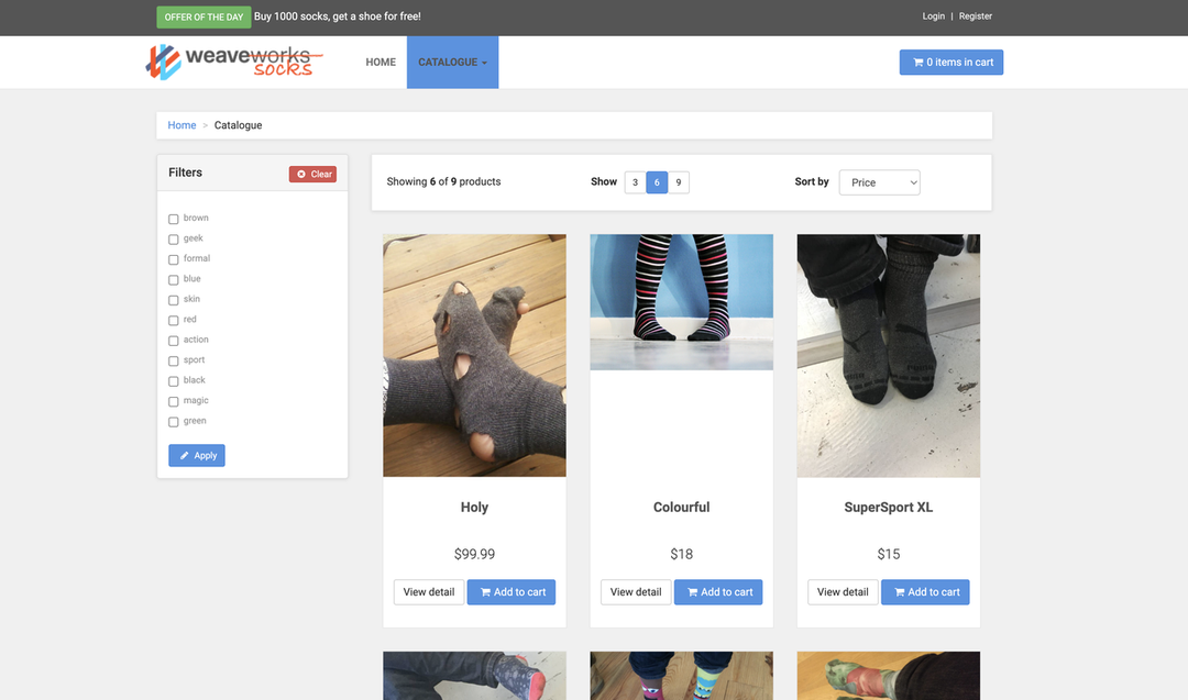 Weaveworks 的 Socks-shop 是一个面向用户的在线销售袜子商店系统,旨在帮助微服务和云原生技术进行演示和测试,并且提供一个真实可测试的应用程序。该项目使用了以下技术或框架:Java Spring Boot、Go、Node.js 并使用容器进行构建部署。