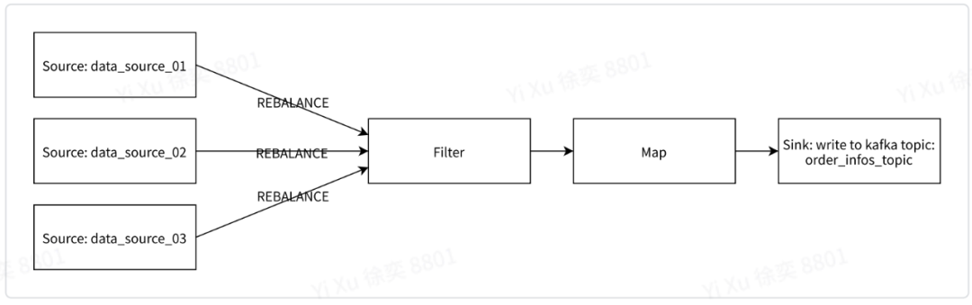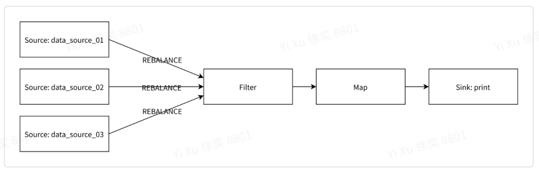 import com.alibaba.ververica.cdc.connectors.mysql.MySQLSource;import com.alibaba.ververica.cdc.connectors.mysql.table.StartupOptions;import org.apache.flink.streaming.api.datastream.DataStreamSource;import org.apache.flink.streaming.api.environment.StreamExecutionEnvironment;import org.apache.flink.streaming.api.functions.source.SourceFunction;public class MySqlBinlogTask {public static void main(String[] args) throws Exception {# 定义多个数据源SourceFunction<String> sourceFunction01 = initMySQLSource(1)SourceFunction<String> sourceFunction02 = initMySQLSource(2)SourceFunction<String> sourceFunction03 = initMySQLSource(3)StreamExecutionEnvironment env = StreamExecutionEnvironment.getExecutionEnvironment();DataStreamSource<String> dataStreamSource01 = env.addSource(sourceFunction01, "data_source_01");DataStreamSource<String> dataStreamSource02 = env.addSource(sourceFunction02, "data_source_02");DataStreamSource<String> dataStreamSource03 = env.addSource(sourceFunction03, "data_source_03");# 多数据流合并DataStream<String> dataStreams = dataStreamSource01.union(dataStreamSource02, dataStreamSource03);# 数据下游输出dataStreams.print();env.execute();}}