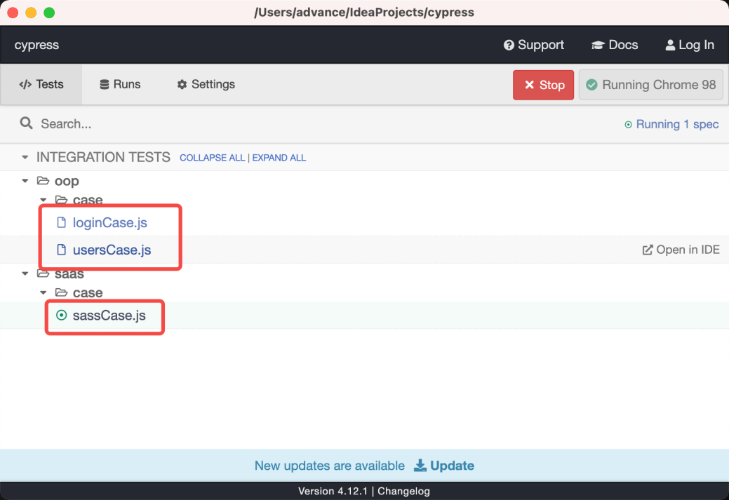 当测试代码修改保存后,Cypress 会自动加载改动地方,并重新运行测试