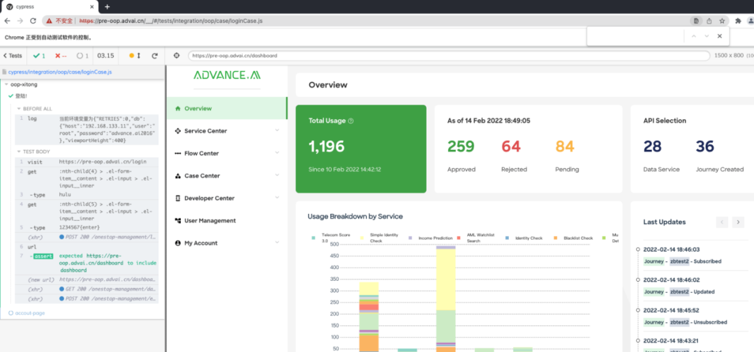 基于 cypress 代码是直接在浏览器中运行,使得调试更简单方便,改动代码后,cypress 控制台会直接运行测试用例,且每一步都有记录,更方便查找测试问题。