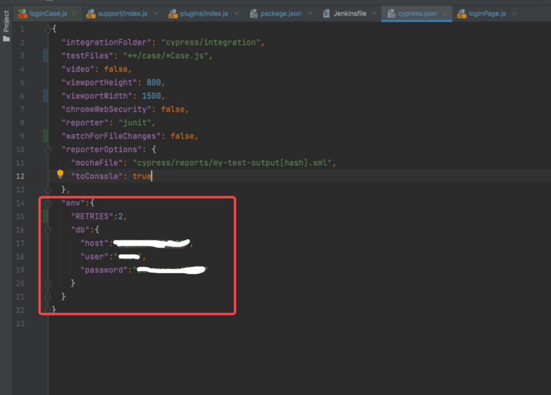 cypress.json 文件配置数据库信息