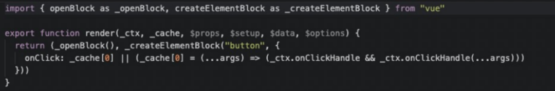 Vue2.x 中,绑定事件每次触发都要重新生成全新的 function 去更新,cacheHandlers 是 Vue3 中提供的事件缓存对象,当 cacheHandlers 开启,会自动生成一个内联函数,同时生成一个静态节点。当事件再次触发时,只需从缓存中调用即可,无需再次更新。开启 cacheHandlers 后,静态标记不存在了,这说明这部分内容不会在进行比较。