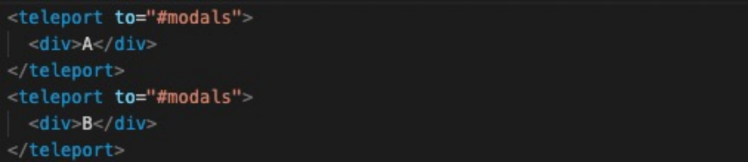 在 Vue2 中创建一个组件,只能有一个根节点,Vue3 中组件可以没有根标签, 内部会将多个标签包含在一个 Fragment 虚拟元素中,这样做的好处可以减少标签层级,减少内存占用。3.2 Teleport