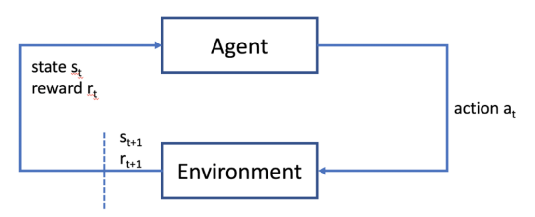下图是一个强化学习的简单示例,强化学习是机器学习中的一个领域,强调如何基于环境而行动,以取得最大化的预期利益。