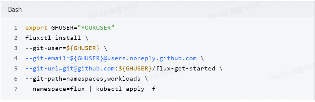 通过 Fluxctl 安装 flux,这里涉及到一个 Flux 的学习仓库,首先 fork 这个项目到你自己的 GitHub 空间