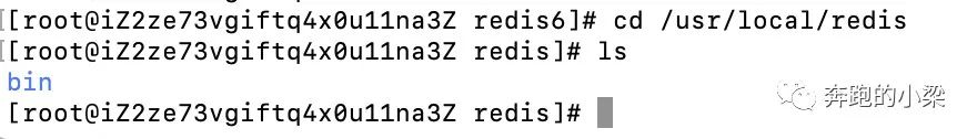 但实际上我们的【安装路径是在/usr/local/redis中】,初始安装完成的时候指定安装路径下只有bin目录。
