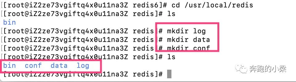 日志 usr/local/redis/log数据 usr/local/redis/data配置文件 usr/local/redis/conf