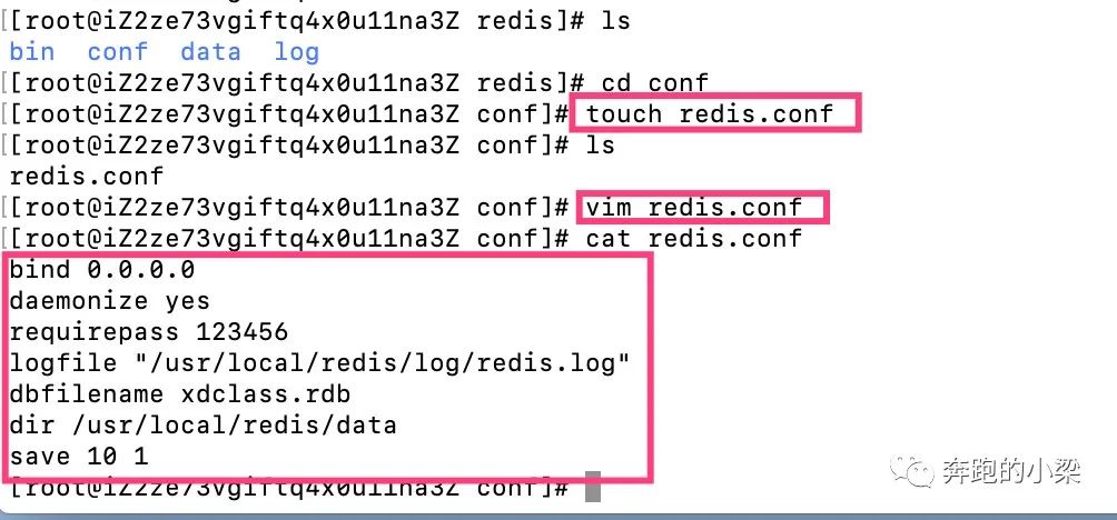 在配置文件 usr/local/redis/conf中创建redis.conf配置文件并编辑如下内容