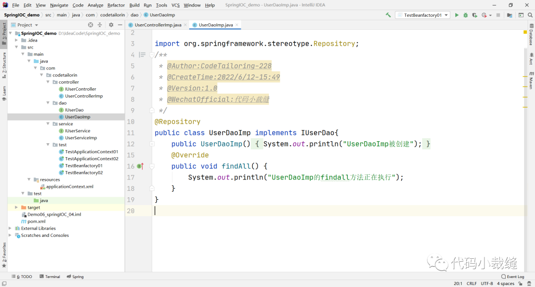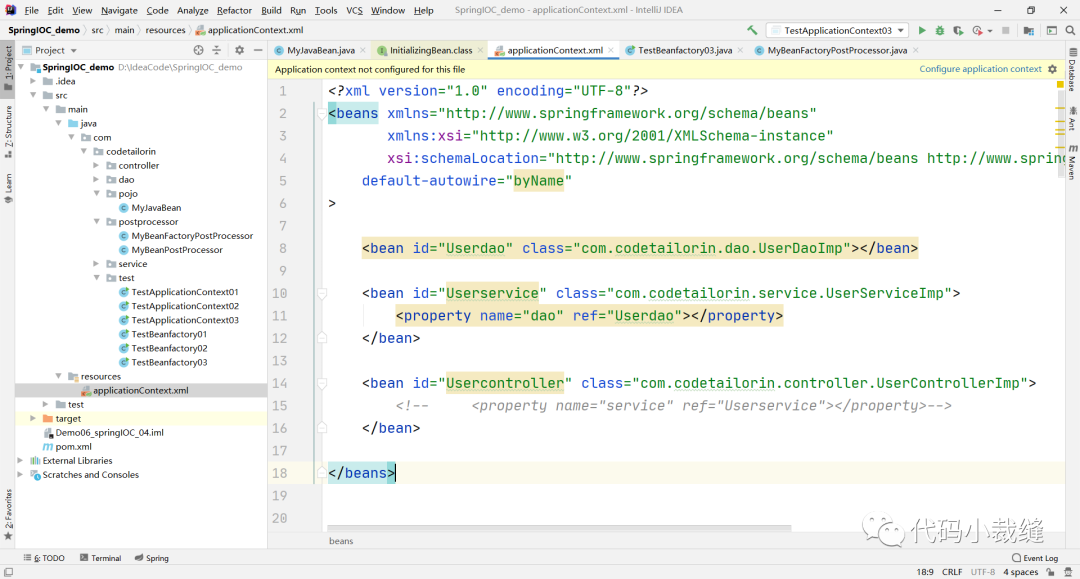 这里呢我选择把Controller标签放在第一个,然后我们来测试一下,看看会不会影响到具体的Bean的创建顺序。