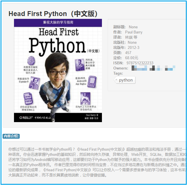 豆瓣是一家以书影音起家的网站,亦是一个在线数据库,提供关于书籍、电影、电视、音乐、游戏、舞台剧等作品的信息,无论描述还是评论都由用户提供。早期的douban-python API模块可以获取图书信息,后来豆瓣的图书API服务关闭了,不再对外提供服务。