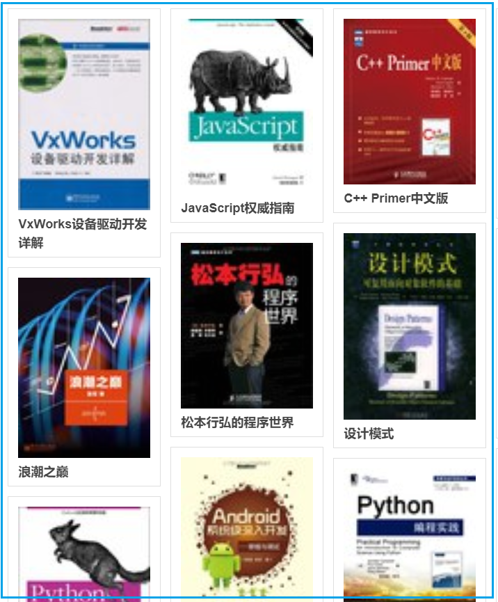 所以并不能硬编码调用图书的封面图像,除非把图像爬到本地。好在有很多人从豆瓣爬图书数据,数据源都是豆瓣的,所以图像的文件名如果没变的话可以直接替换。如果在网上找到基于豆瓣的数据提供的图书API,可以复用以前爬取的数据,替换URL即可。如下是替换第三方的图片资源后的效果: