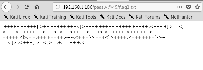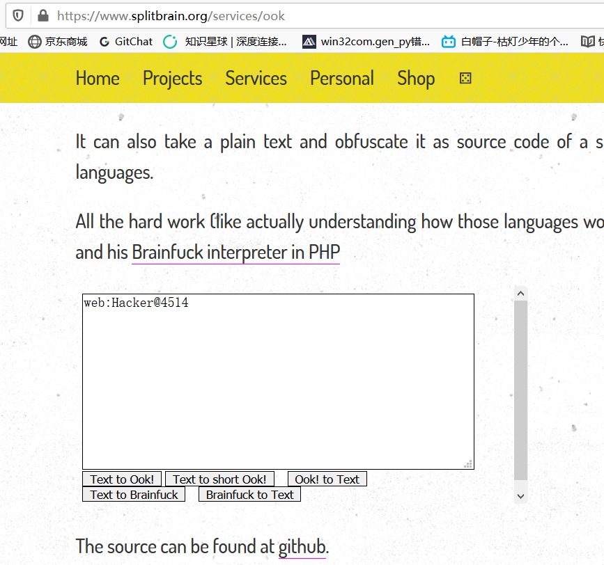 于是在网上找了brainfuck在线解码网站,得到一对用户名密码
