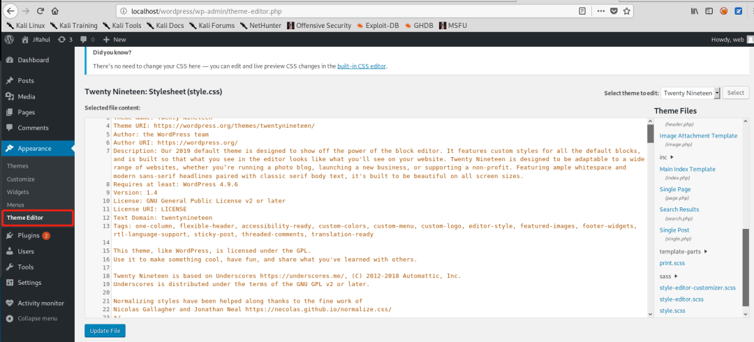 1.是通过Appearance下的themeeditor模块添加php反弹shell的代码,再用metasploist监听获取shell
