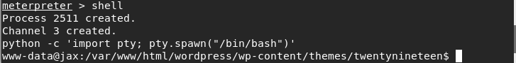 拿到shell第1件事就是获取一个标准shell,可通过以下命令获取python-c 'import pty; pty.spawn("/bin/bash")'