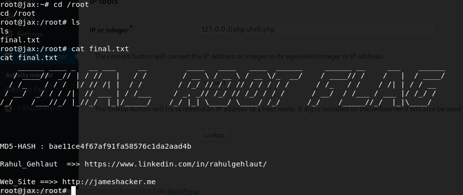 kali上使用python-m SimpleHTTPServer 80开启临时web服务,然后网页上点击lookup即可下载php代码