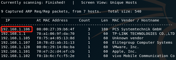 主机探测:netdiscover-i eth0 -r 192.168.1.0/24