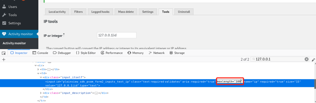 确实可以存在命令执行,但该输入框存在长度限制,这里使用浏览器修改前端参数绕过