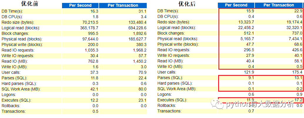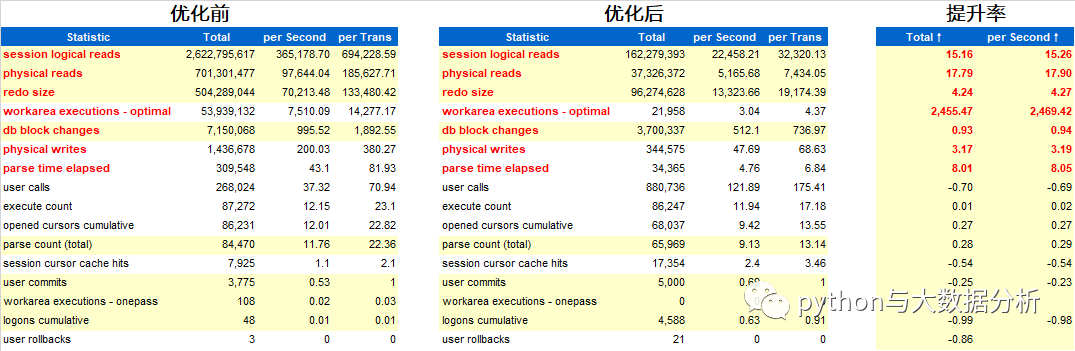 关于Report Summary,DB的损耗,物理读、逻辑读写、块变化数量、硬解析的指标都有所下降,换言之,性能就提升了。