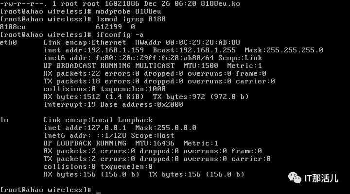 还有个很重要的前提,就是你系统的内核是否支持你无线网卡的厂商,查看你无线网卡驱动针对系统内核版本有什么版本要求,这些都是我们需要事先确定的。 将我们下载的无线网卡芯片的驱动传到系统上(从物理机到虚拟机操作系统上),上传之后我们发现这是源代码安装包,但是这里没有config配置文件,但是也有makefile文件,需要我们执行make,可是执行了提示错误是,没有make指令,这是就是我们开发环境配置的问题,这里安装开发软件包Development tools (首先安装这个,如果这个能满足实验环境就不用再装Additional Development)。安装完成开发组件之后,就可以直接运行make 指令:生成网卡的内核模块,我们接着执行makeinstall指令。接下来我们要查看一下系统中是否已经加载网卡驱动了(如果加载成功,会形成内核模块),很明显现在是不行的,内核模块的加载是在系统启动的时候,但是我们也知道在不重启的状态下加载模块的方法:显示加载成功了,可以查看是否能否看到我们的设备启动: 此处没有显示网卡接口名,证明还是没有识别驱动,必要情况下还是需要重启下操作系统。 操作系统重启后,重新识别驱动模块,查看是否识别无线网卡:到这里无线网卡已经可以被操作系统识别。