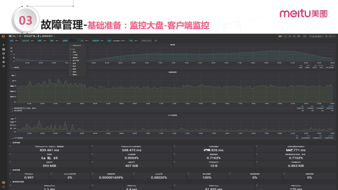 应对一些流媒体的应用,我们自研了一套融合CDN的监控还有流媒体的监控。这个其实也比较关键,因为现在业务体量大了之后,CDN是不可避免的会用到,但如果没有这部分监控的话,CDN质量就要依赖于用户反馈,链路就会比较长。所以说要有手段去主动监测CDN的质量。我们建设了这样的CDN的质量监控,然后会去给不同的CDN厂商去打分,再去做智能的调度,是这样的。