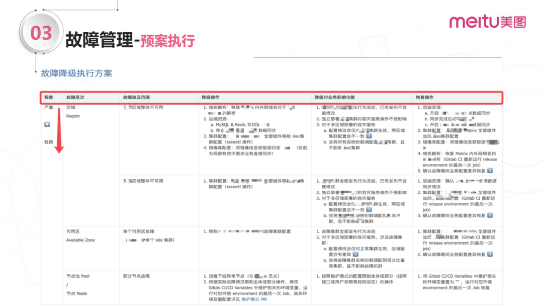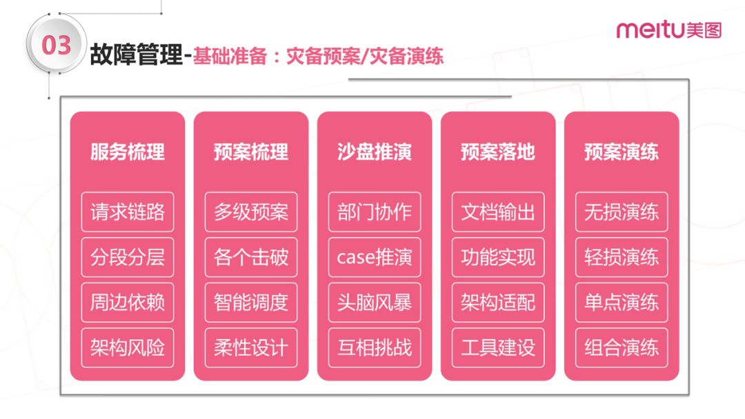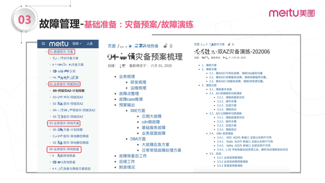 下图是美图内部灾备预案和故障演练的例子: