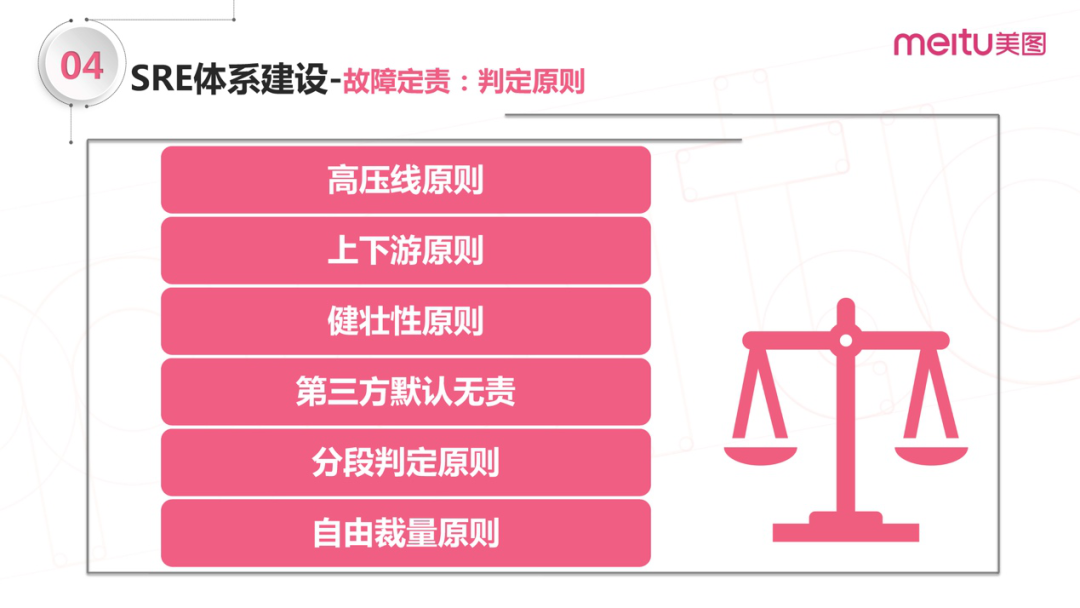 定责任并不意味着处罚。我们整体的故障管理从原则上来说尽量不指责,但不指责不代表着可以持续犯错误。这里由于时间原因重点解释四个原则: