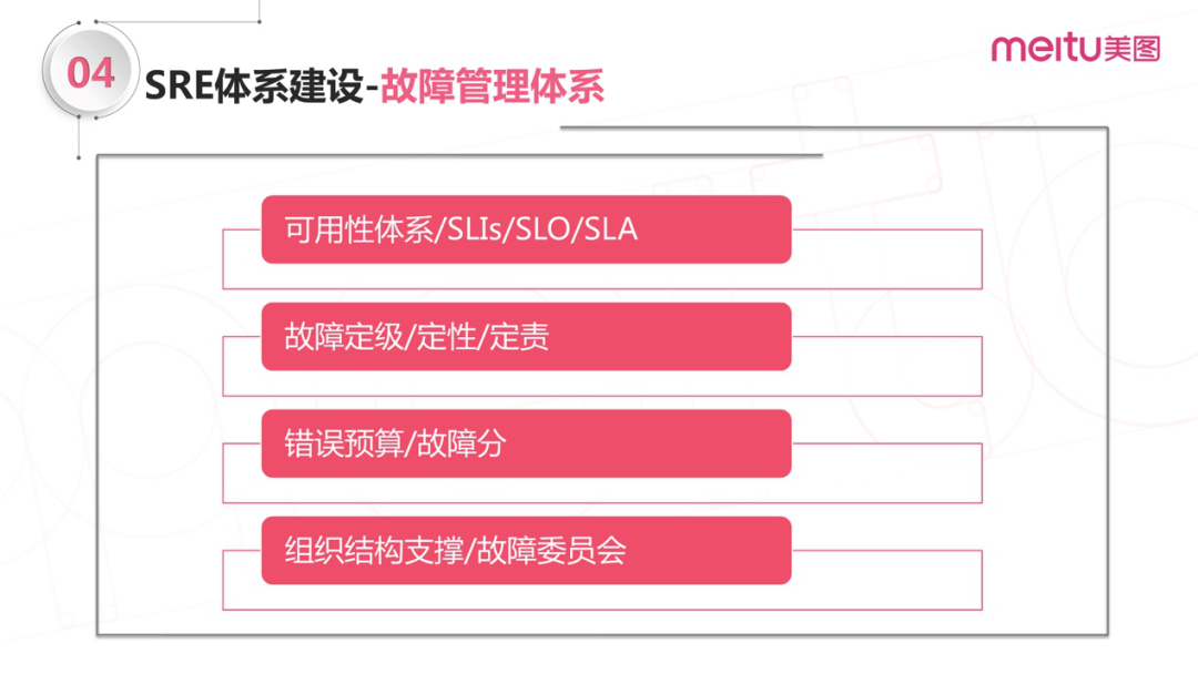 再后面,围绕故障管理,我们深入聊一下SRE的体系建设,如何通过体系建设来更好地做故障管理;
