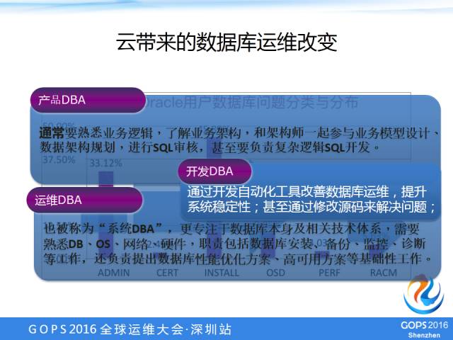 我们认为,在Oracle数据库领域,在将来变革的环境之下,可能绝大部分传统DBA所做的底层跟系统级相关的事情在未来会被替代,但是我认为最有价值的部分就是那3%跟性能相关的千奇百怪的各种问题。