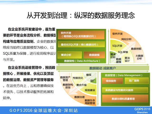 我们认为,未来的数据服务或者在数据层做的事情,无论是从开发端还是到运维端,会是一个纵深的服务体系,其实也是DevOps的精髓,大家要学会从全局的观点去看。