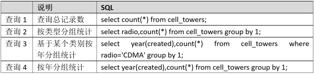 本测试只是简单对比一下查询性能,执行SQL如下: