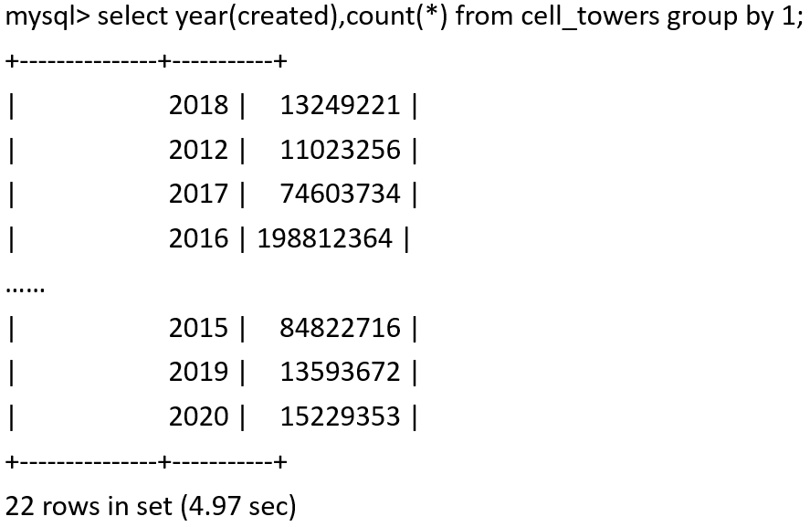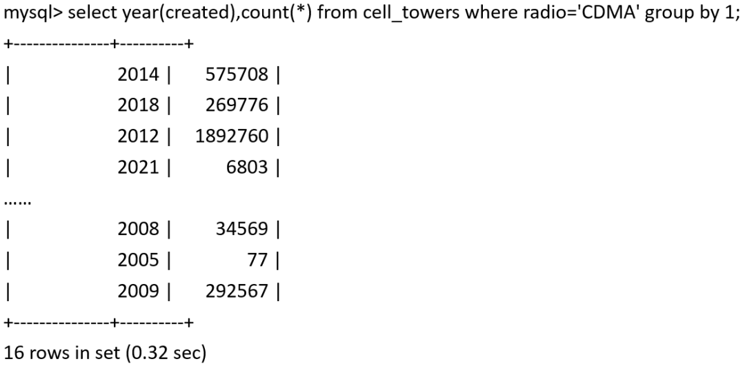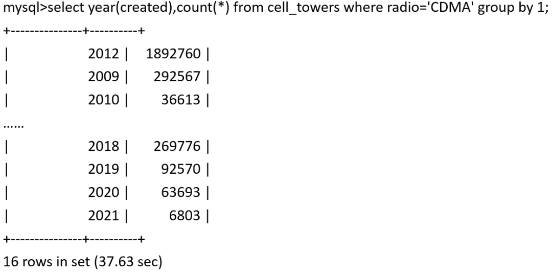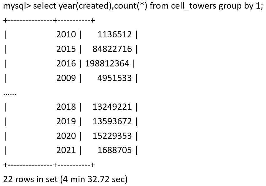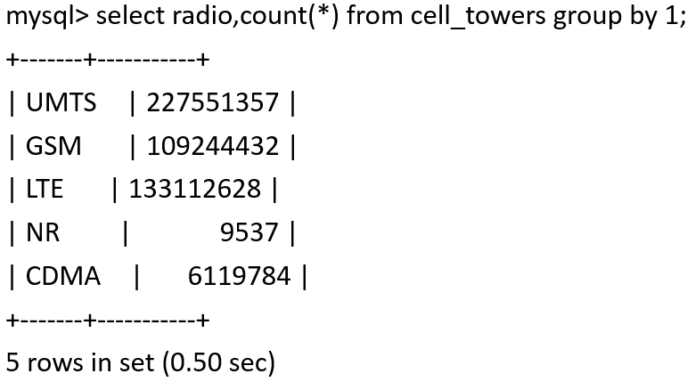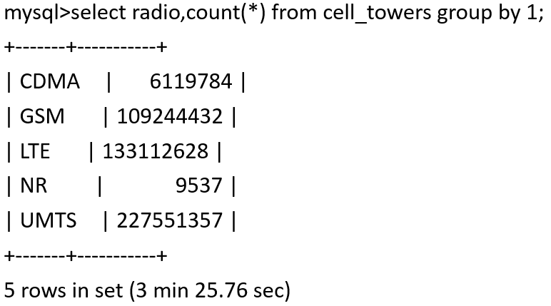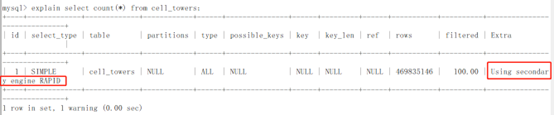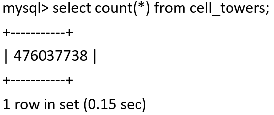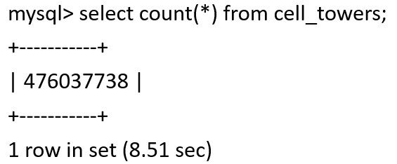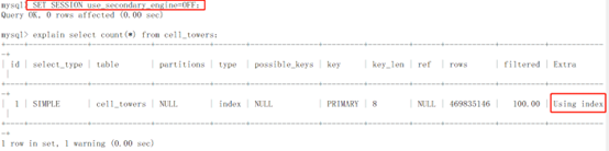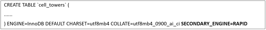MySQL>ALTER TABLE cell_towers SECONDARY_ENGINE = RAPID;