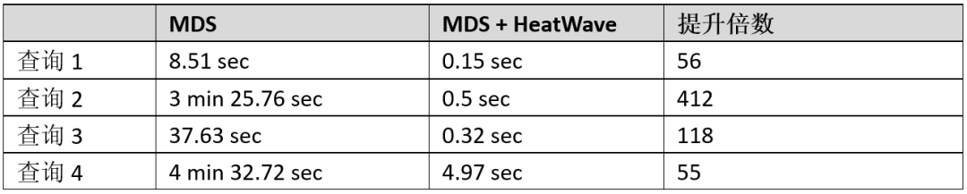 以上是未经优化下的查询结果,针对HeatWave的一些优化选项,查询性能还可以进一步提升。