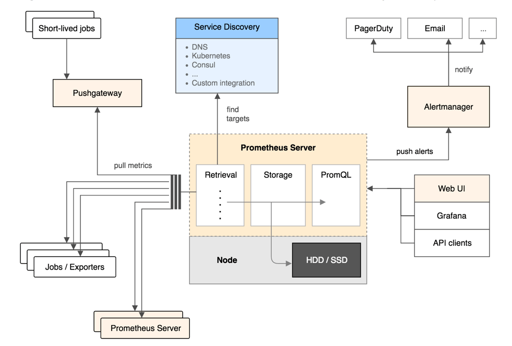 Web UI 用于多样的UI展示,一般为Grafana,还有一些例如配置自动发现目标的小组件和后端存储组件。