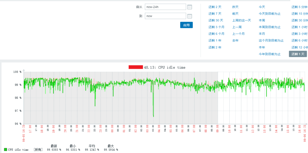 查询 2022/06/07 00:00:00 -2022/06/08 00:00:00 itemid 29175 浮点数监控项历史数据。