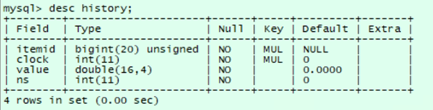 ①history表:存储信息类型为浮点数的监控项历史数据。