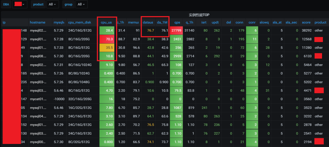 通过数据行列转化,实例健康指数积分计算和排序,风险实例头部展示,临近性能值趋势对比,实时查看实例整体运行情况。