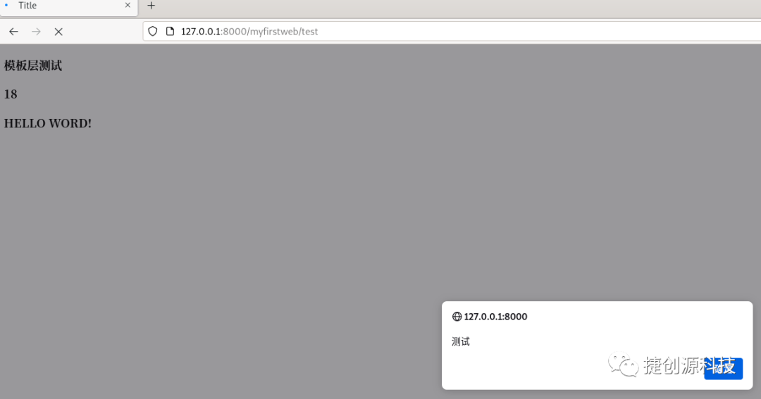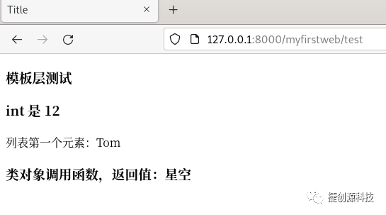 4.编译运行,在浏览器输入:http://127.0.0.1:8000/myfirstweb/test