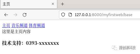 编译运行,在浏览器输入:http://127.0.0.1:8000/myfirstweb/base