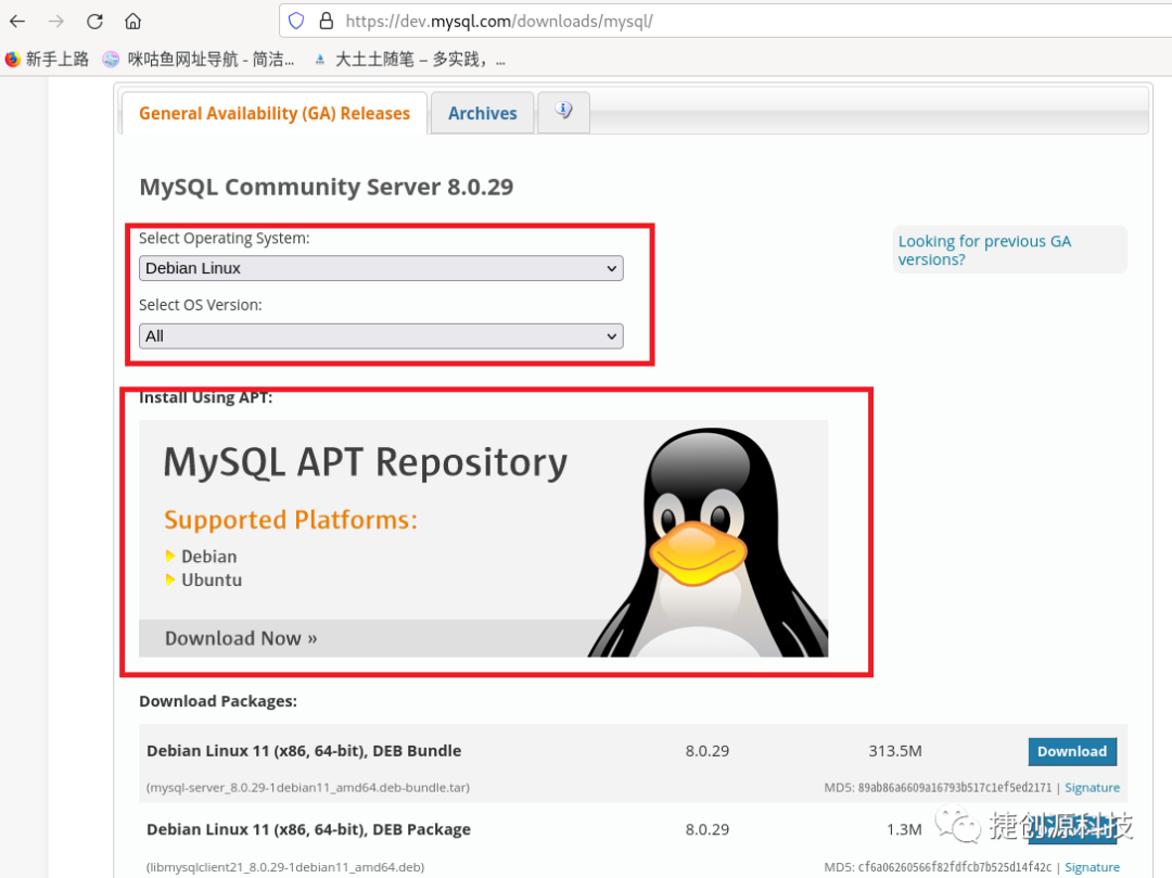 Debian11使用了MariaDB 在APT的软件包存储库中并没有mysql,在这里下载